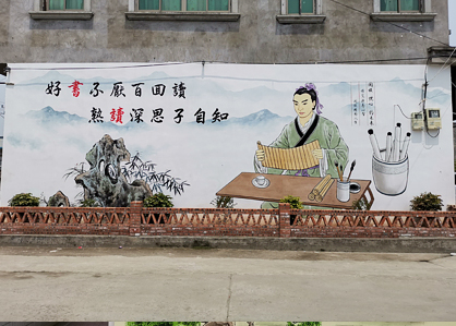 溫州市墨客墻繪藝術(shù)有限公司主要從事有個(gè)性有創(chuàng)意的家居裝飾墻繪、幼兒園卡通彩繪、KTV酒吧主題墻繪、3D立體墻繪、習(xí)哥彭姐文化大革命的城鄉(xiāng)文化宣傳墻繪等,當(dāng)然還有我們獨(dú)歩武林的高墻墻繪藝術(shù)!畫高墻有時(shí)一個(gè)頭像就有兩米,不僅僅是大了型不好把握,一般習(xí)慣在陸地作戰(zhàn)的繪畫者往往上去后會(huì)讓你唱起一首歌:“三月里的小雨,淅瀝瀝瀝......瀝瀝……淅瀝瀝瀝下個(gè)不?!本褪谴魃夏虿粷瘢麄円矔?huì)在上面演示帕金森。我們施工時(shí)下面觀看的人如少女初戀般心跳,欣賞的人似紂王品酒觀妲己跳舞一樣陶醉。連村中惡犬也為我們搖尾吶喊:“……墨客墻繪……神勇無畏!